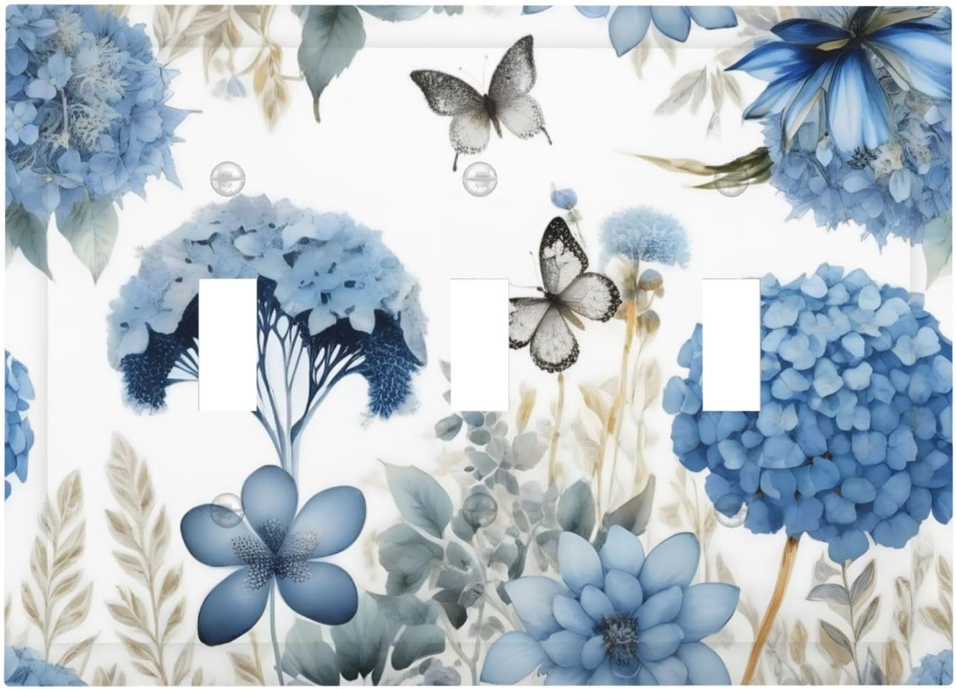 | Color | Blue Floral Hydrangea Floral Butterfly Flower Plant Wall Plate |